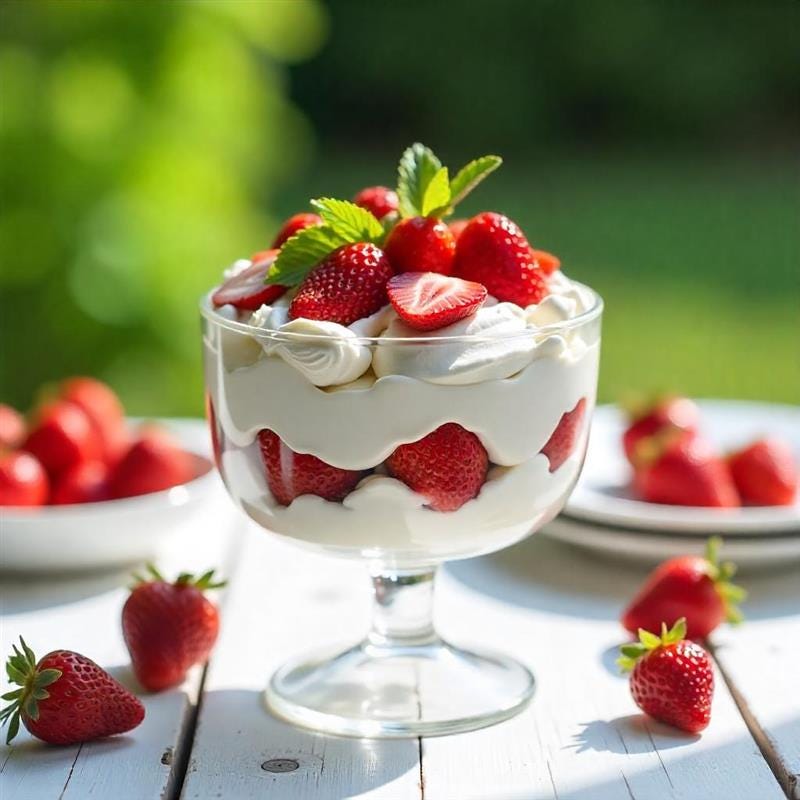 Crushed meringue, whipped cream, and strawberries—this light and airy dessert is a staple of British summer recipes. Perfect for garden parties and afternoon teas.