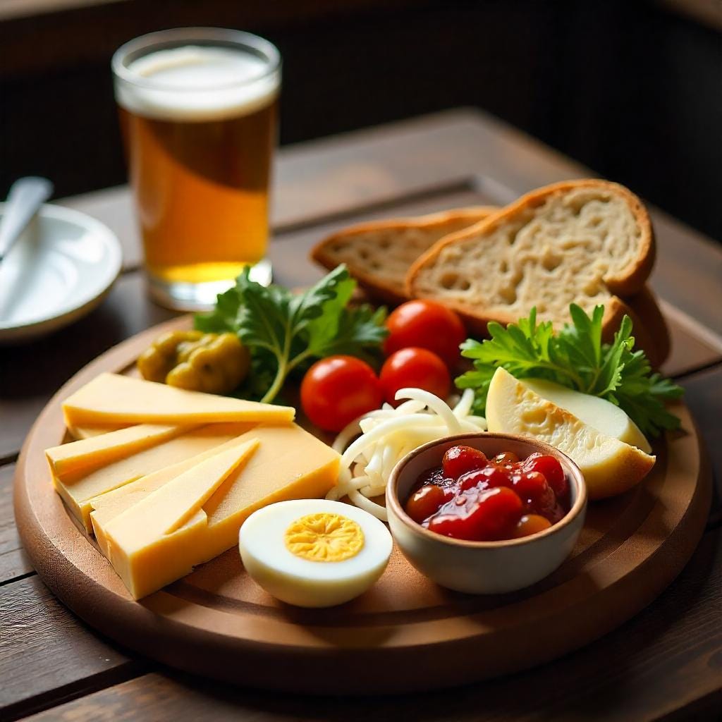 This pub classic includes cheese, crusty bread, chutney, and pickled onions. A true British cheese board experience, often served with cider or ale. Light, satisfying, and authentically British.